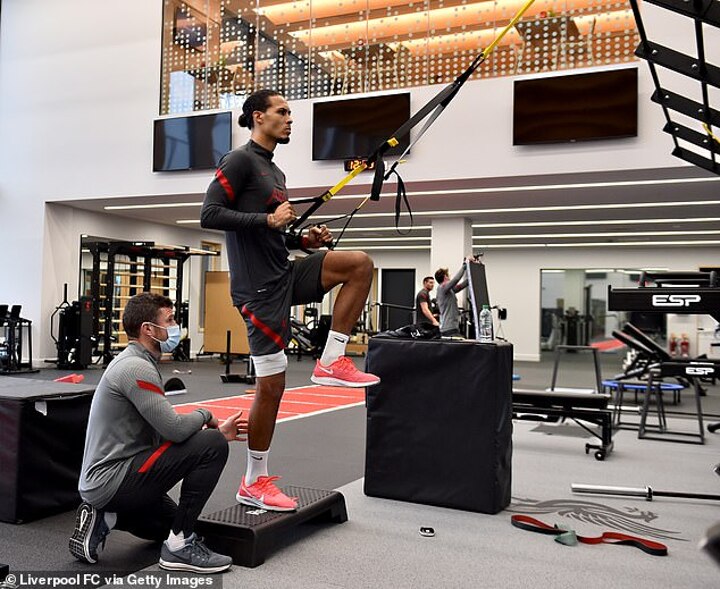 Virgil van Dijk has been pictured in training just five weeks after undergoing surgery on a serious knee injury.